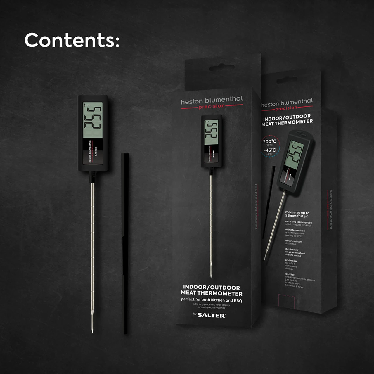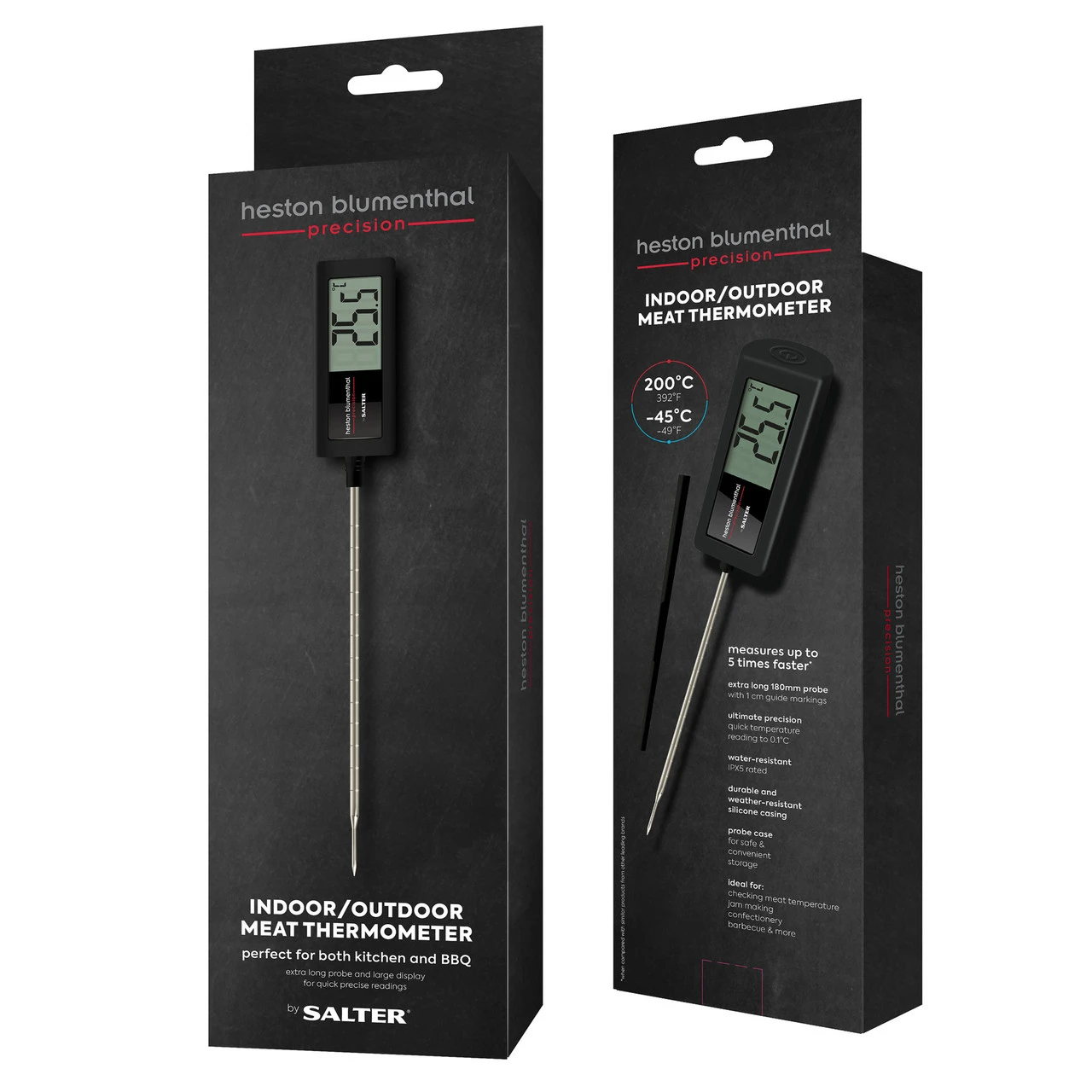 - Enhance your cooking ability with the Indoor/Outdoor Thermometer from Heston Blumenthal Precision by Salter, measuring 200°C to -45°C.