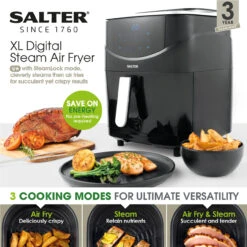 Salter XL Digital Steamer & Air Fryer – 6.5L Capacity, 1L Water Tank, 1700W