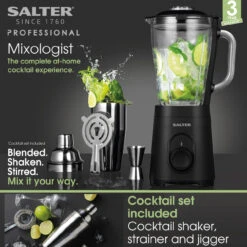 Salter Mixologist Cocktail Blender Set – 1.5L, Includes Cocktail Shaker & Accessories, 600W