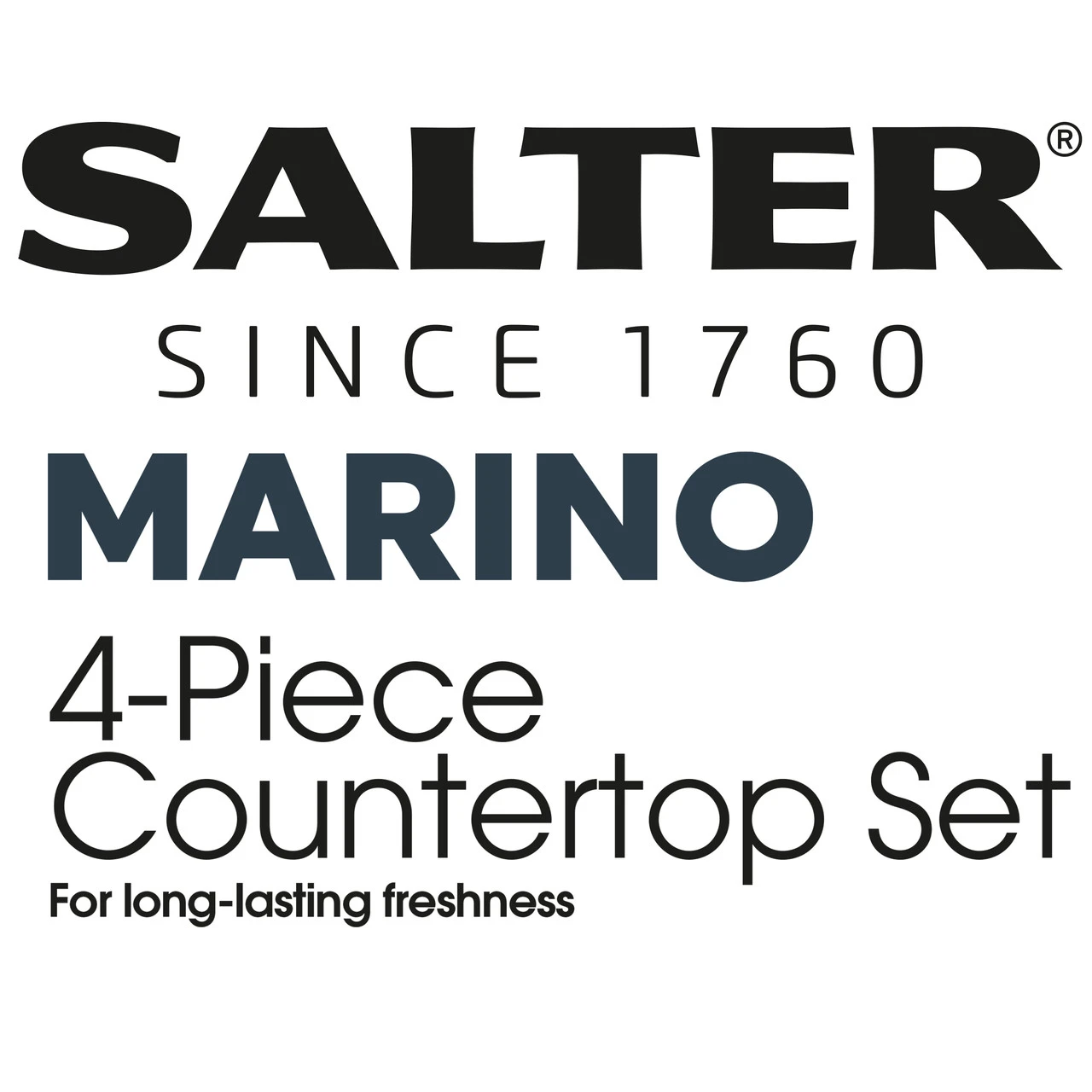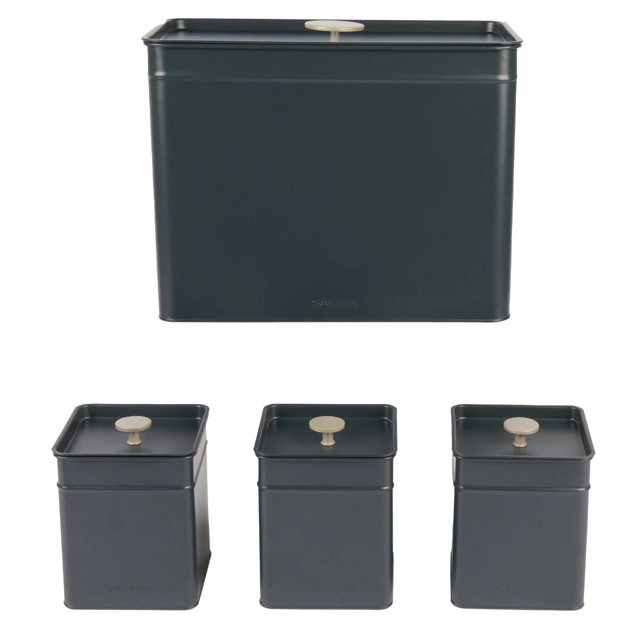 - This Salter Marino Collection 4-piece countertop set contains 1 bread bin and 3 smaller Canisters, ideal for tea, coffee, and sugar.