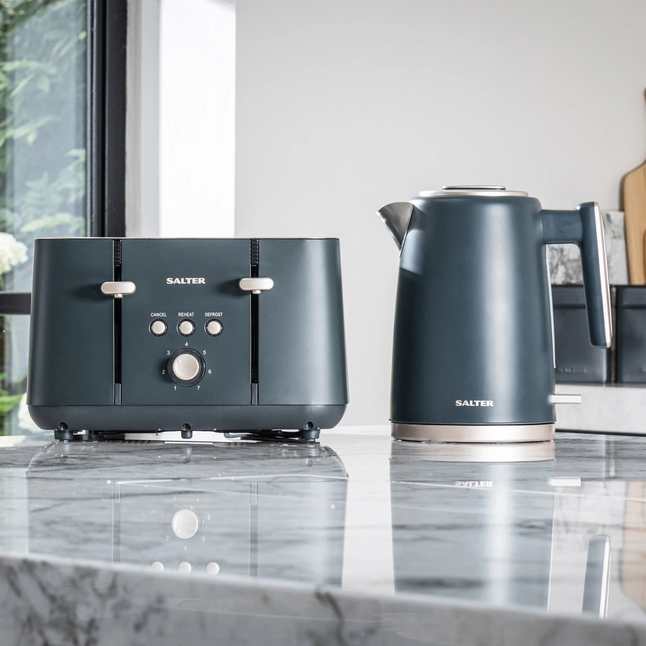 The Salter Marino Collection 4-piece countertop set is the perfect addition to any kitchen. This set includes 1 large container and 3 smaller containers, ideal for storing bread, tea, coffee, and sugar, for long-lasting freshness and having them ready to use at your convenience. The set’s modern square design and powder-coated blue grey finish give them a contemporary look. The containers are easy to clean and make for convenient worktop organisers – a great solution for tidying up your countertop.