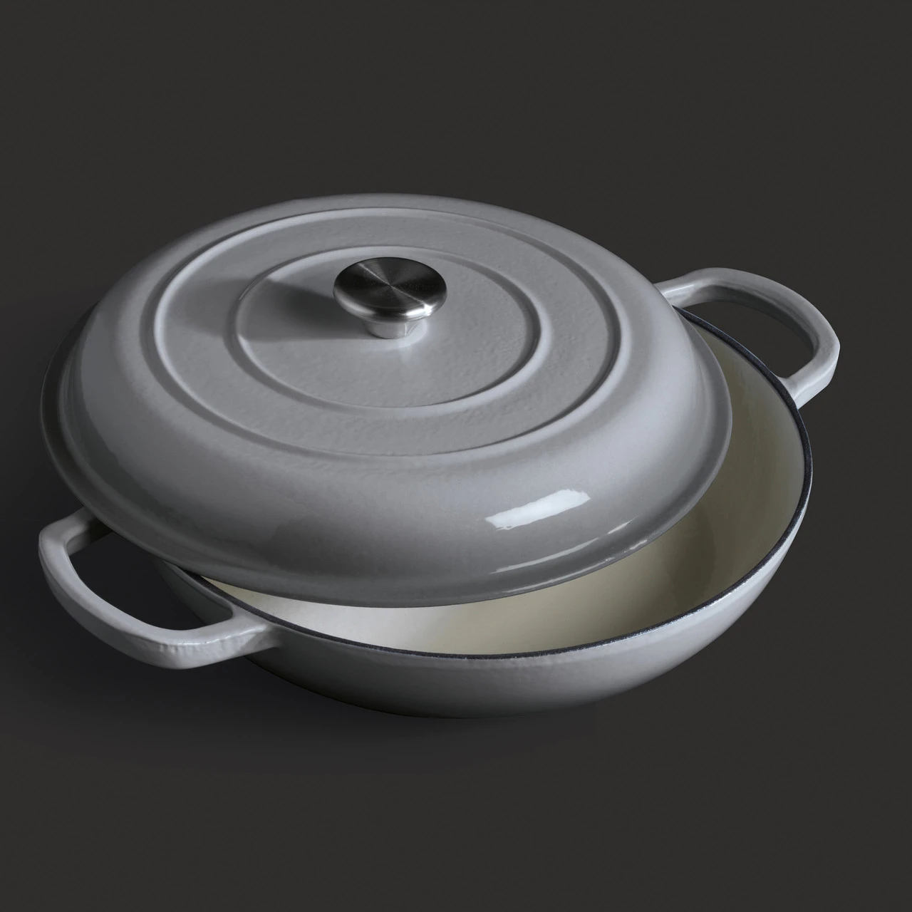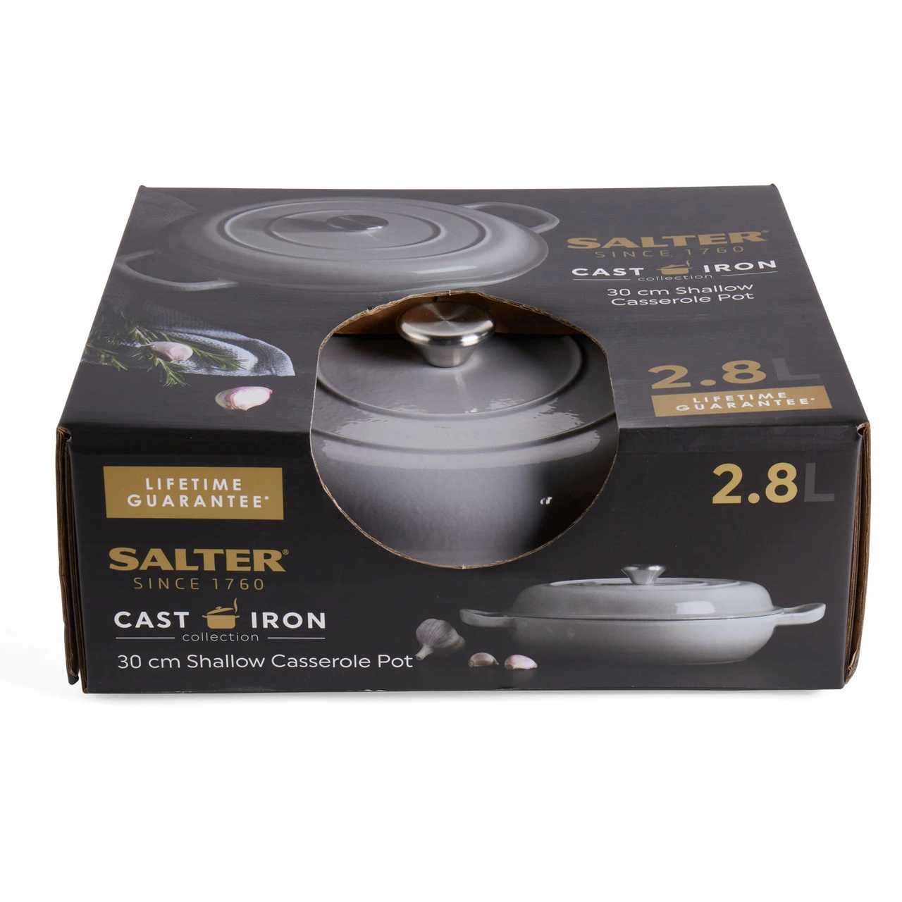 - Fry, boil, stew, and bake all your favourite foods with this versatile 30cm Shallow Casserole Pot from the Salter Cast Iron Collection.