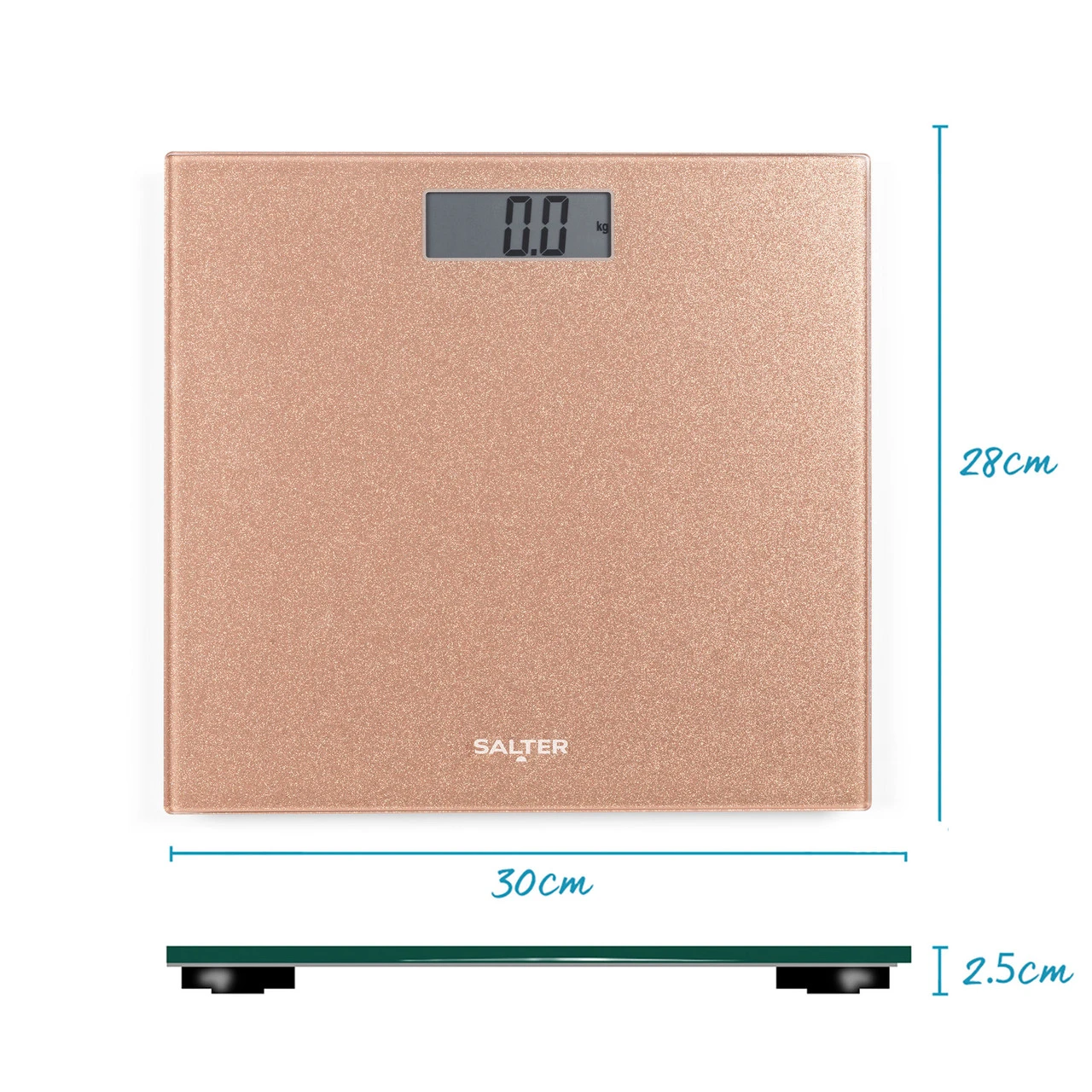 - Achieve fuss free weight management at home with this Salter Glitter Electronic Digital Scale with an sparkling silver design.