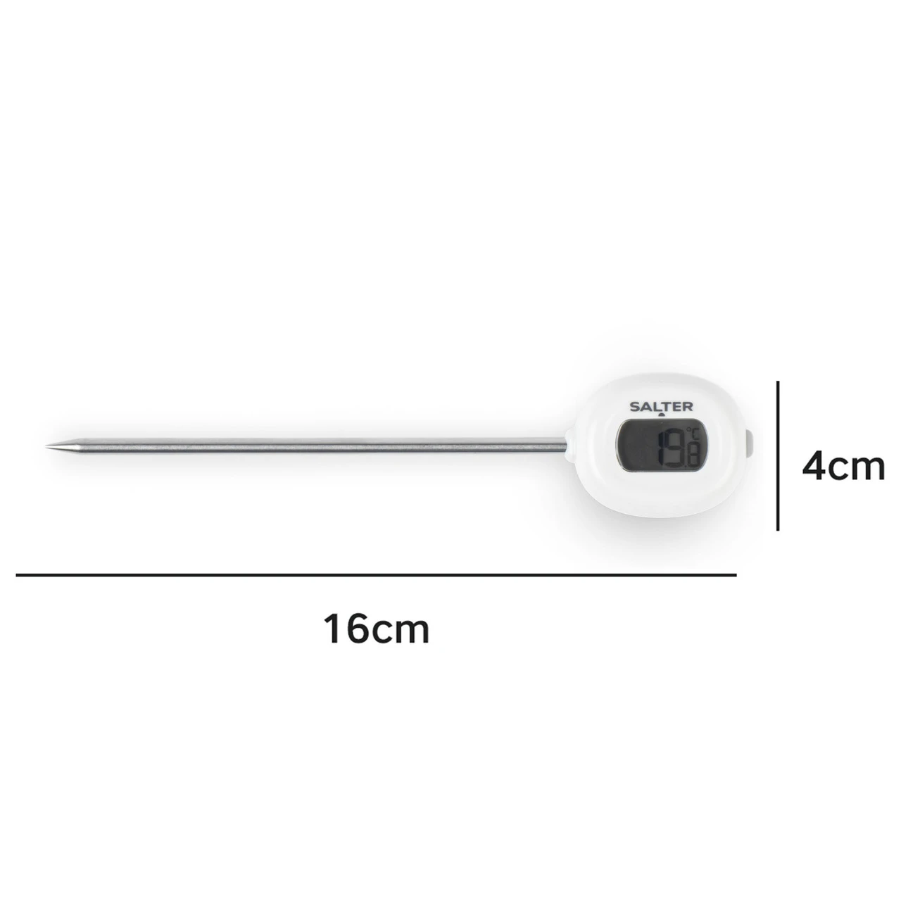 Whether you’re preparing the centrepiece dish for a dinner party, wiping your brow over the BBQ or baking the perfect cake, crunch time is checking whether it’s all cooked to perfection. Salter Instant Read Digital Meat Thermometer with its intuitive instant read results, is the quickest way to make sure you’re set for success. This clever little gadget has 10mm digits, so you can check meat temperatures at a glance. Super precise 0.1°C/ 0.1°F graduations, and with a hard wearing stainless steel probe, you’ll get all the info you need in one quick peek with the handy instant read meat thermometer.