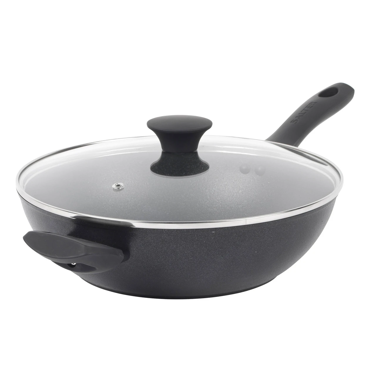 With 260 years of providing excellent goods for everyday homes and a great addition to any collection, this Salter Megastone Noir 28cm Wok with tempered glass lid is 7 x tougher when tested against a leading homewares retailer own-brand non-stick pan, allowing you to cook using little to no oil. Made with a corrosion-resistant forged aluminium body, this wok is 100% PFOA free meaning no harmful chemicals are released when cooking and is suitable for use on all hob types including induction. Wonderfully metal utensil safe, precondition the non-stick surface before first use.