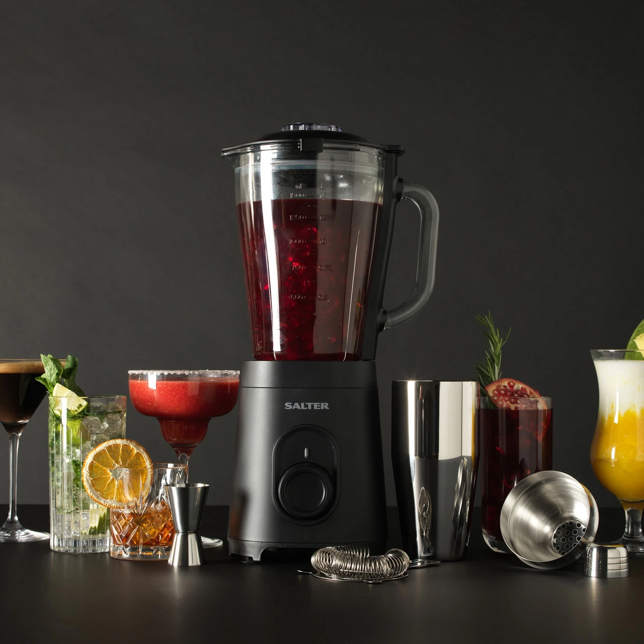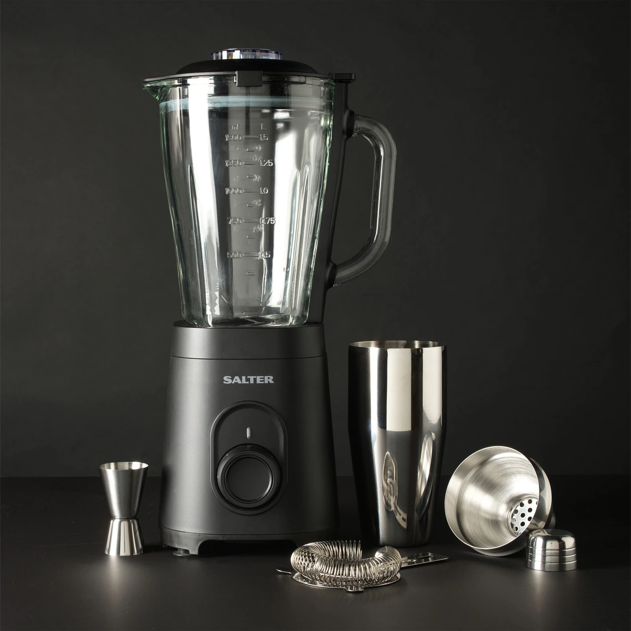 - Turn your kitchen into a cocktail bar with the Salter Pro Mixologist, blend, shake and mix your way with the 1.5L glass jug blender.