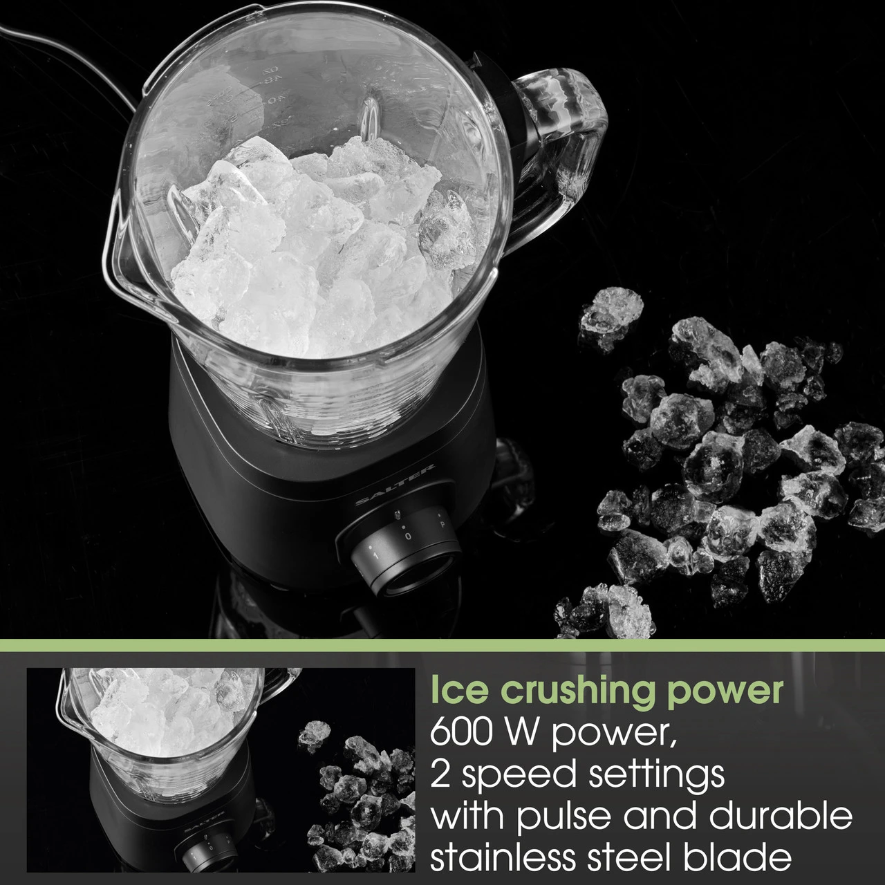 - Complete with 600W and ice-crushing power, turn fresh ingredients into artisan cocktails with 2-speed settings and pulse function.